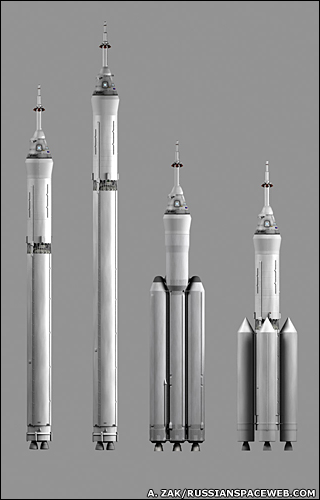 Several possible configurations are being considered for Russia's next-generation manned spaceflight rocket.