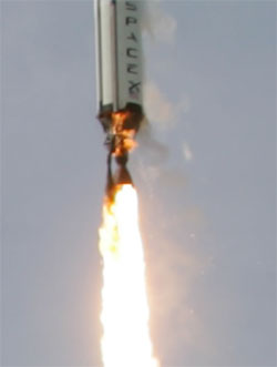 Судя по картинке, в момент отказа двигателя, она была довольно близко от вертикали над стартом.