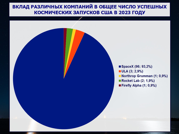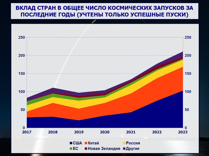Для сравнения, в 2022 году было совершено 178 полностью успешных космических запусков из 186, в 2021 — 115 из 134 в 2020 — 104 из 114, в 2019 — 96 из 102, в 2018 — 111 из 114, в 2017 — 83 из 90.
