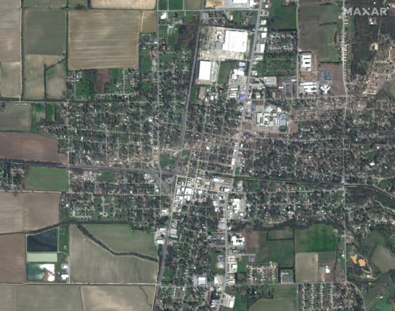 Последствия торнадо, прошедшего через город Винн (США) / © Maxar Technologies
