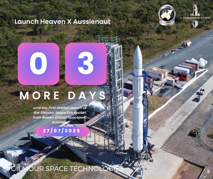 T-3 Days until the First Orbital launch of the @GilmourSpace Eris Rocket from Bowen Orbital Spaceport, Australia!