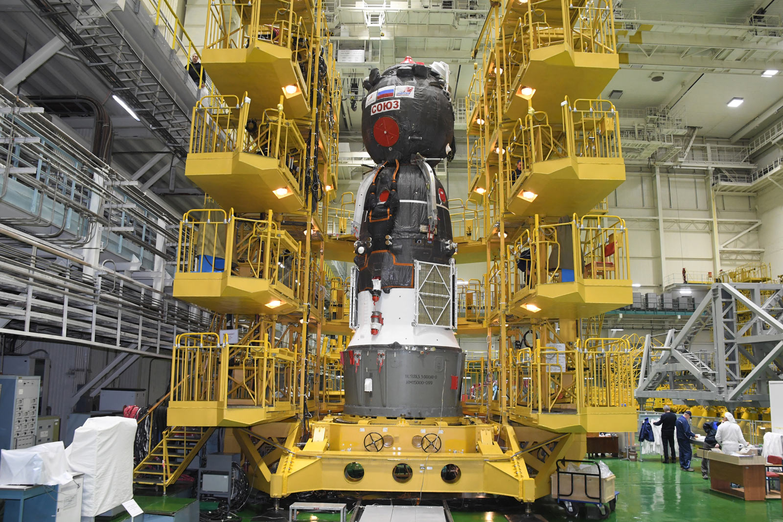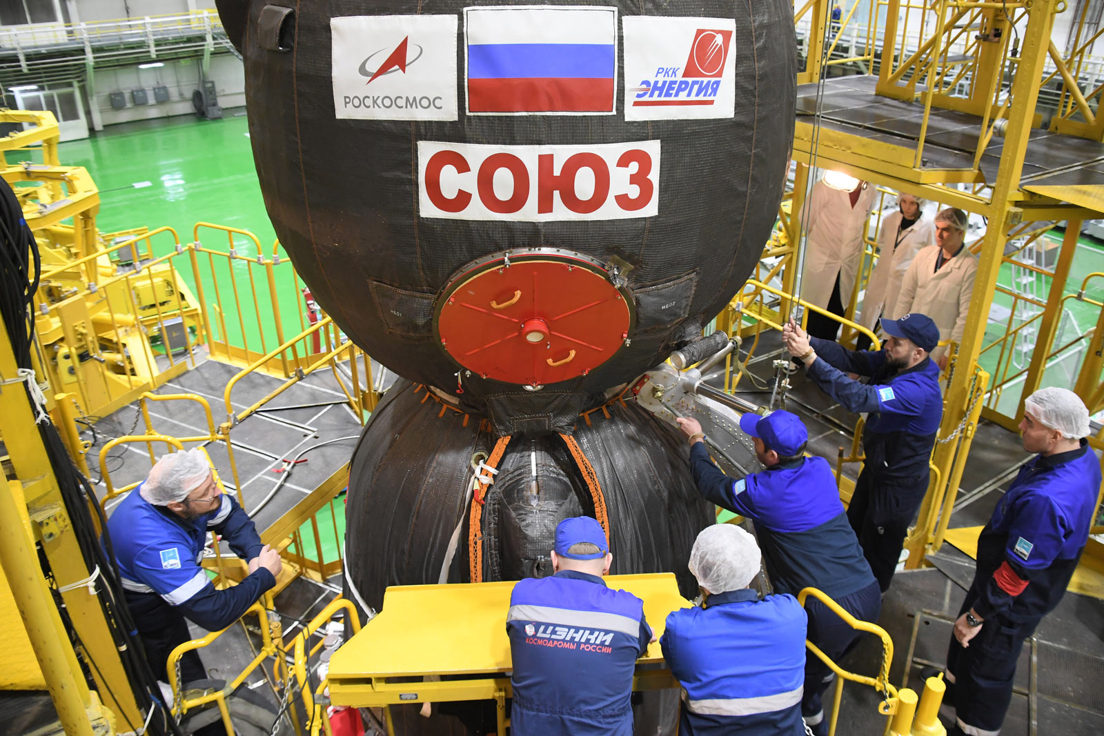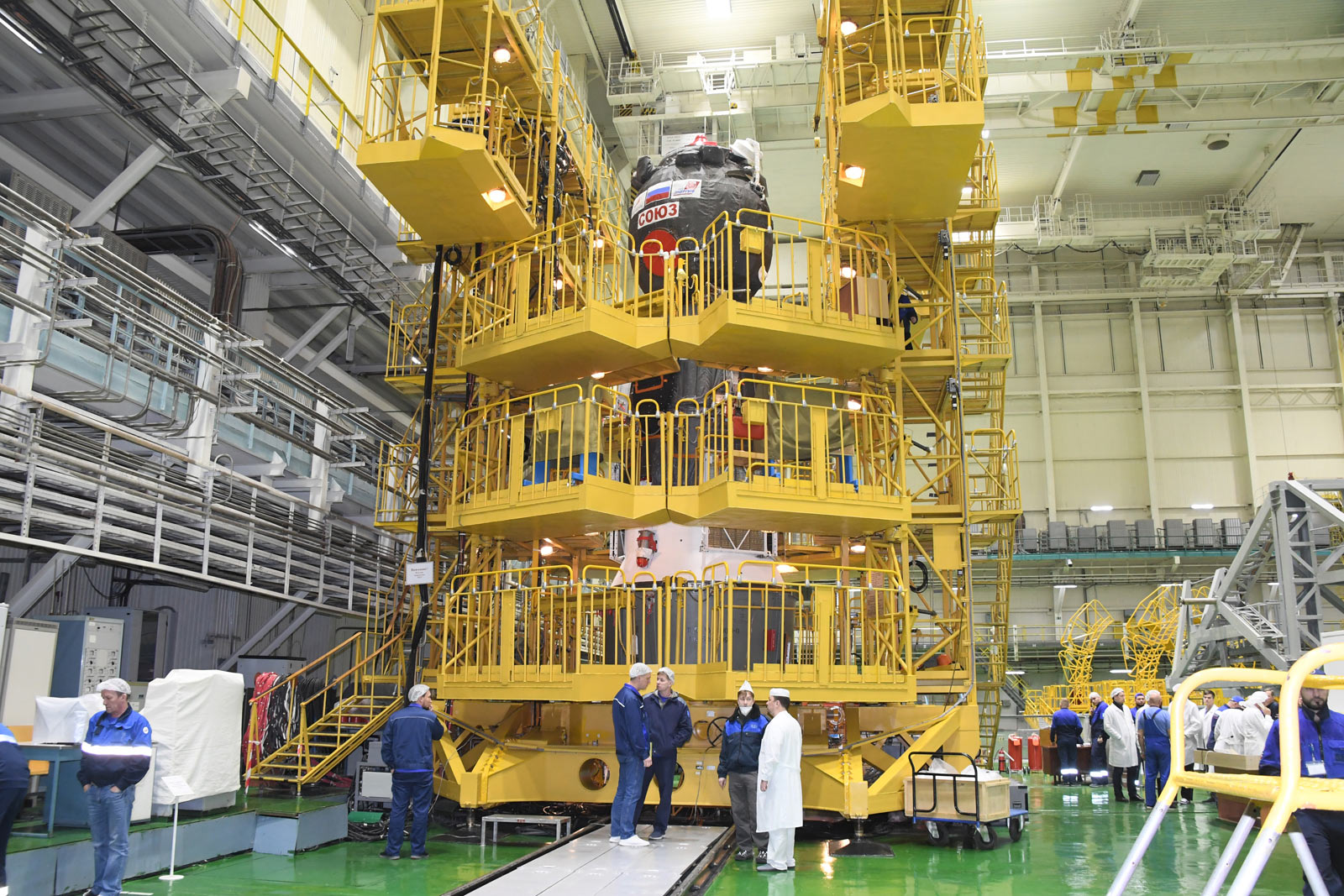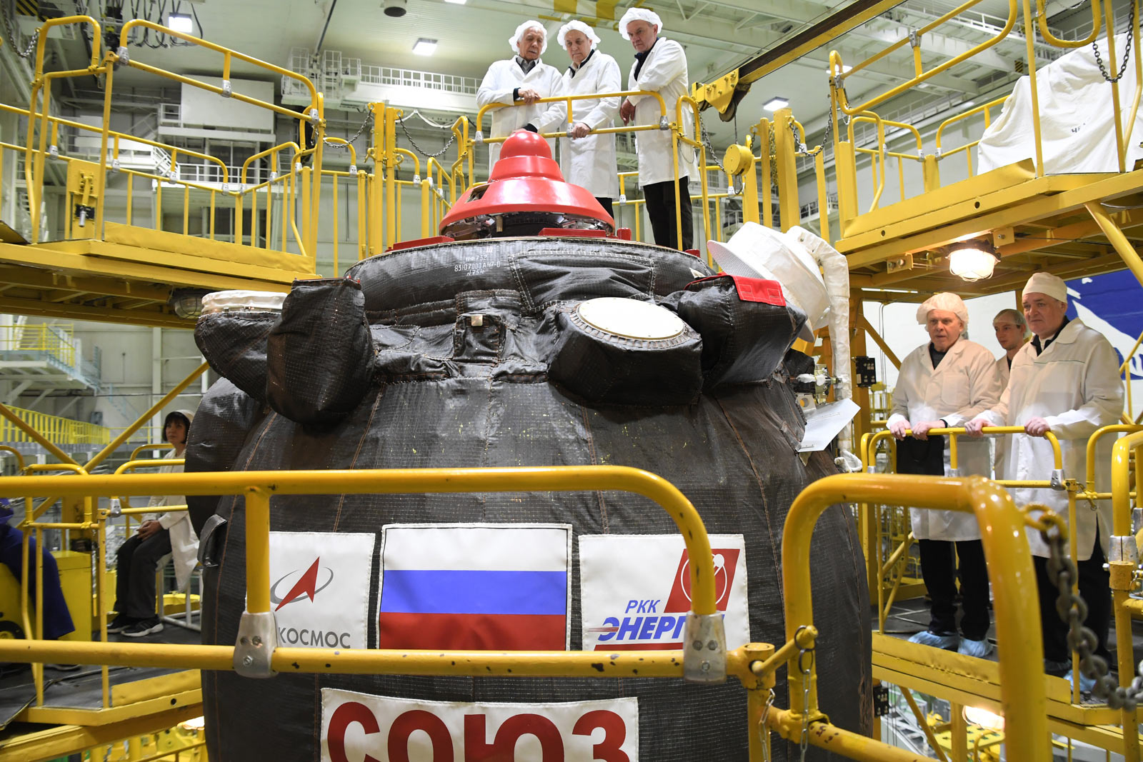 Сегодня в монтажно-испытательном корпусе 254-й площадки космодрома Байконур специалисты Ракетно-космической корпорации «Энергия» имени С.П. Королева и других предприятий Госкорпорации «Роскосмос» провели авторский осмотр беспилотного корабля «Союз МС-23» и выполнили накатку на него головного обтекателя.