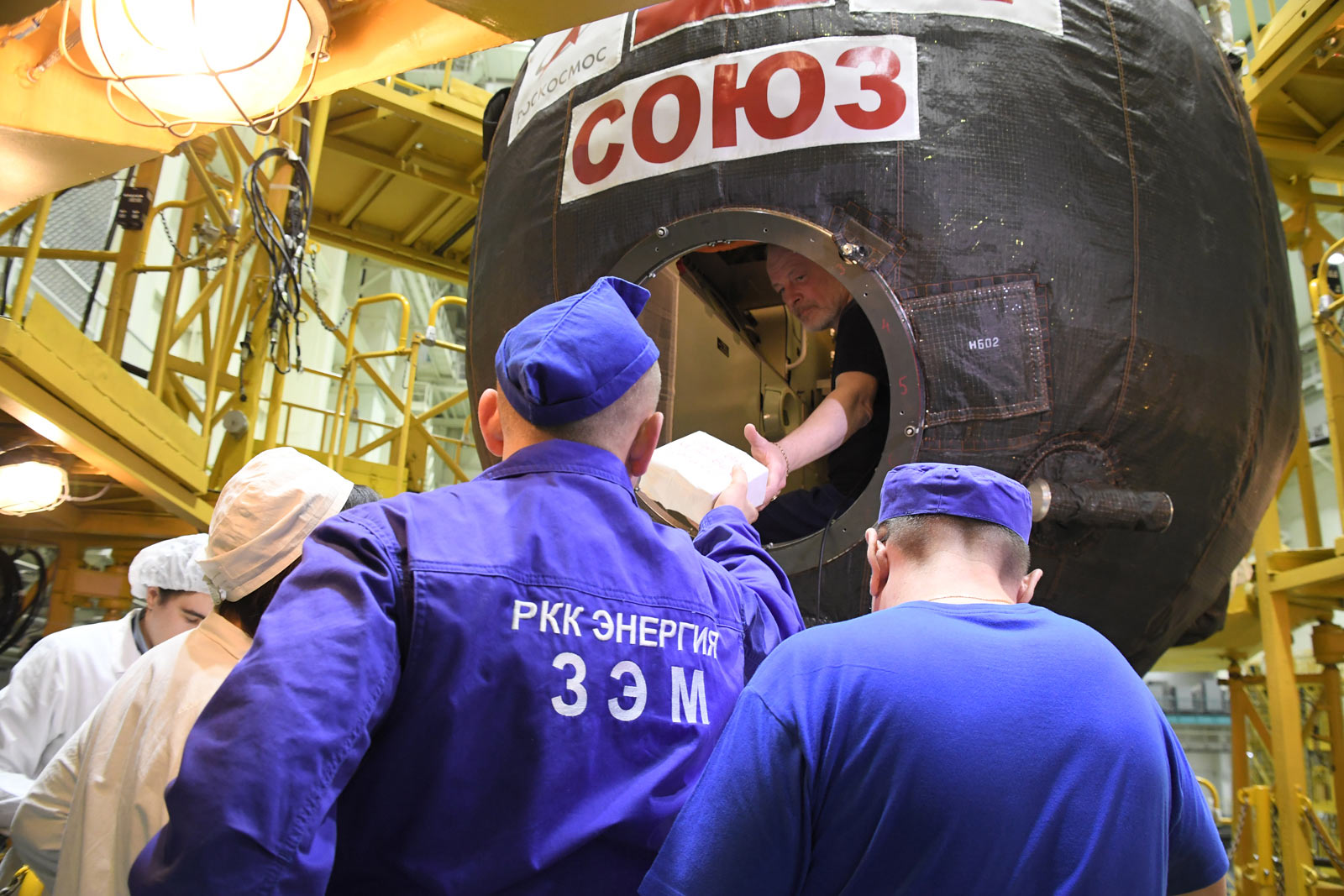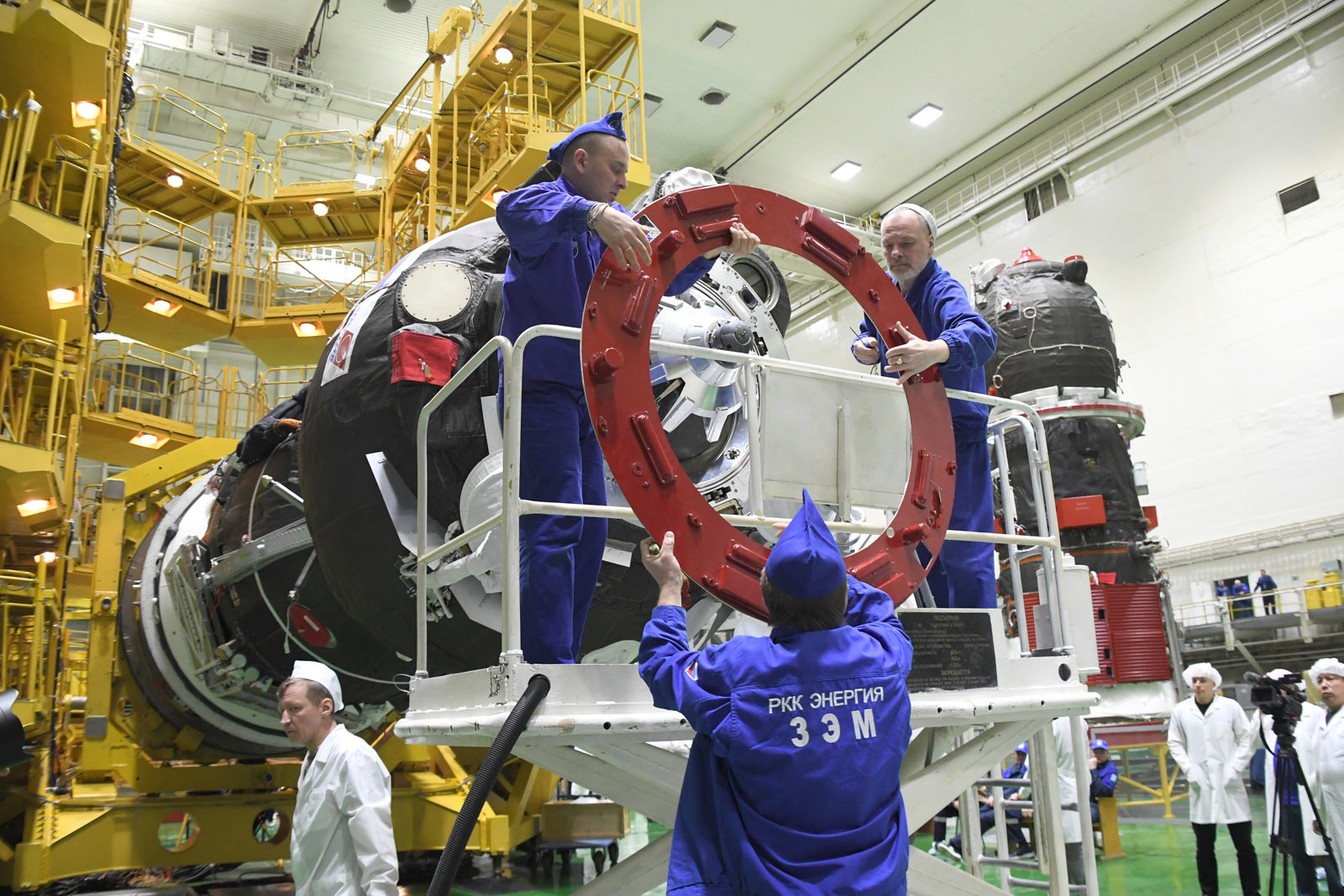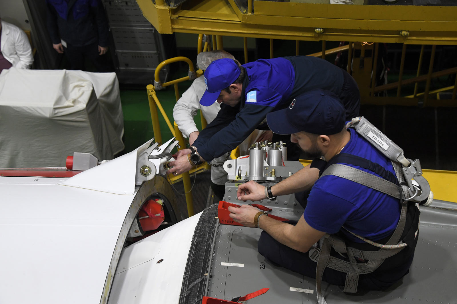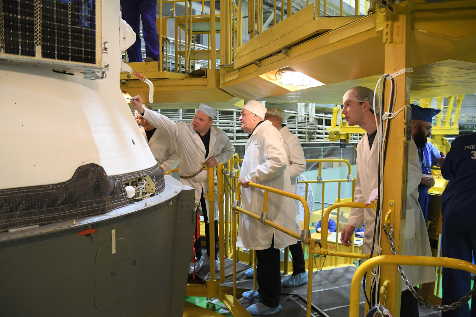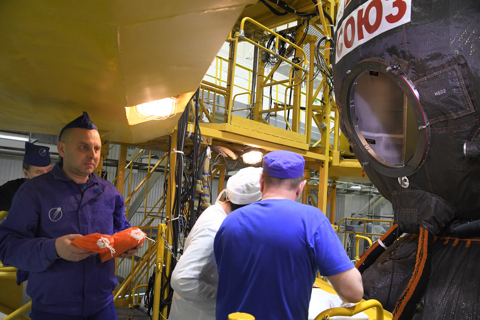 В соответствии с графиком работ в монтажно-испытательном корпусе площадки 254 состоялся авторский осмотр и проведены заключительные проверки ТПК «Союз МС-23». Затем специалисты РКК «Энергия» им. С.П. Королева выполнили технологические операции по накатке головного обтекателя, провели подготовку сборочно-защитного блока к предстоящему контролю стартовой готовности и завершили размещение в отсеках корабля около 430 кг доставляемых грузов, включающих средства обеспечения жизнедеятельности экипажа и укладки для проведения научных экспериментов.