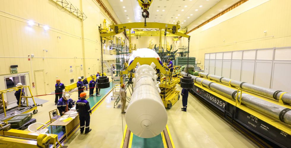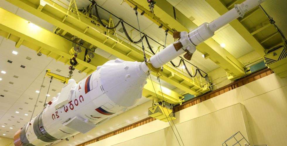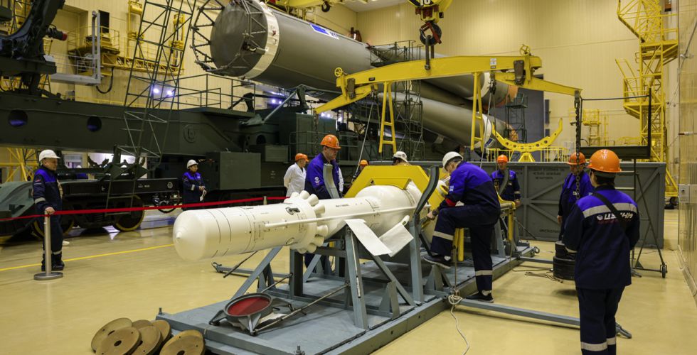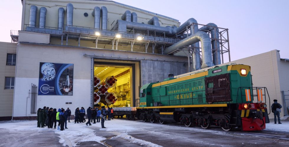 Сегодня специалисты РКК «Энергия» им. С.П. Королева и профильных предприятий Роскосмоса выполнили комплекс технологических операций по погрузке и отправке корабля железнодорожным транспортом в монтажно-испытательный корпус ракеты-носителя на площадке 31, где провели подготовку головного блока к сборке ракеты космического назначения «Союз-2.1а».