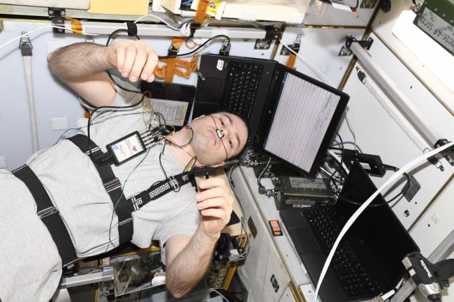 Один из них – эксперимент «Кардиовектор». Его целью является изучение механизмов адаптации сердечно-сосудистой системы к воздействиям на организм факторов длительного космического полета. Несколько сеансов этого эксперимента космонавты обязательно проводят до и после полета. На станции проверка влияния невесомости на работу сердца и параметров дыхания проводится экипажем ежемесячно.