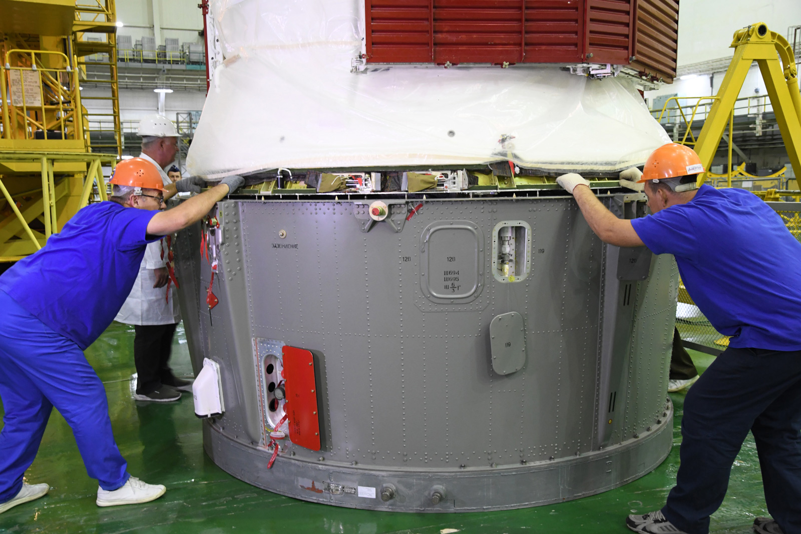 Для чего нужен переходный отсек? Эта деталь соединяет корабль и ракету. Механически связывает «Союз МС» с головным обтекателем, а также обеспечивает интеграцию командного интерфейса корабля в бортовую систему управления ракеты-носителя.