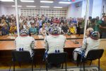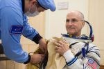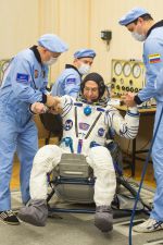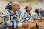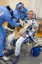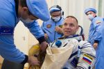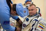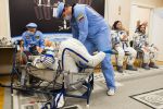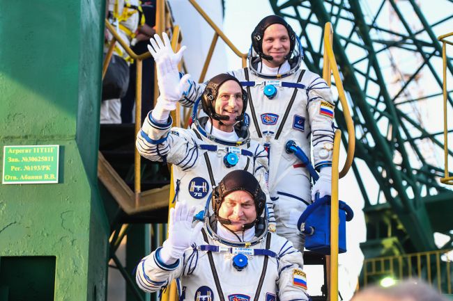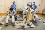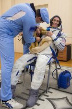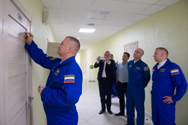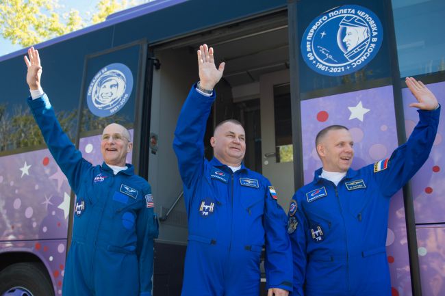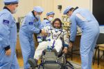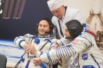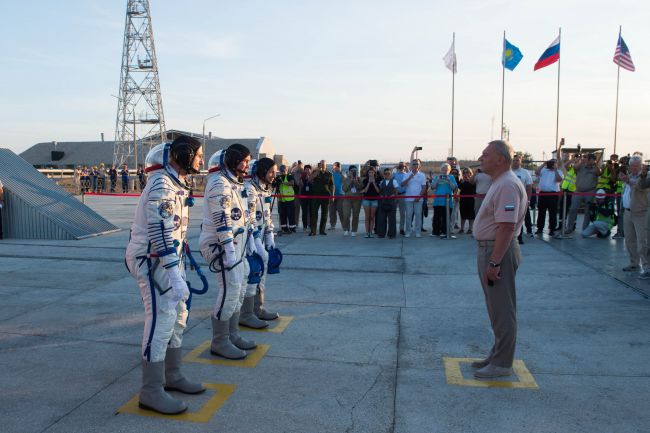 В монтажно-испытательном комплексе космонавты и астронавт надели скафандры и проверили их на герметичность. После доклада членам Государственной комиссии о готовности к полёту они заняли свои места в корабле «Союз МС-26».