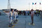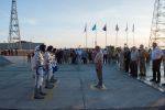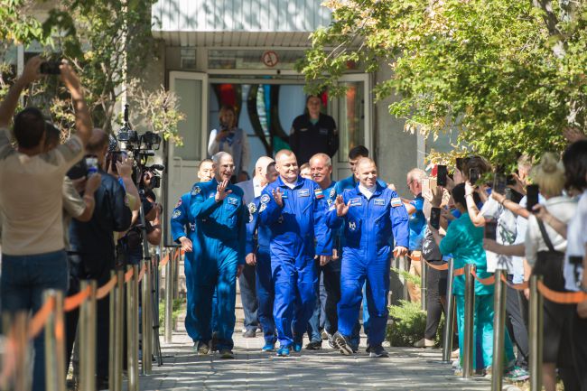 Затем на специально оборудованном автобусе «Звёздный» А. Овчинин. И. Вагнер и Д. Петтит отправились на 254-ю площадку космодрома. За основным экипажем последовали их дублеры: Сергей Рыжиков, Алексей Зубрицкий и Джонатан Ким.