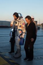 По традиции в день старта члены экипажа оставили автографы на дверях гостиницы «Космонавт» и покинули ее под песню «Трава у дома». Эта музыка неизменно звучит перед каждым полётом космического корабля и является негласным гимном космонавтов.