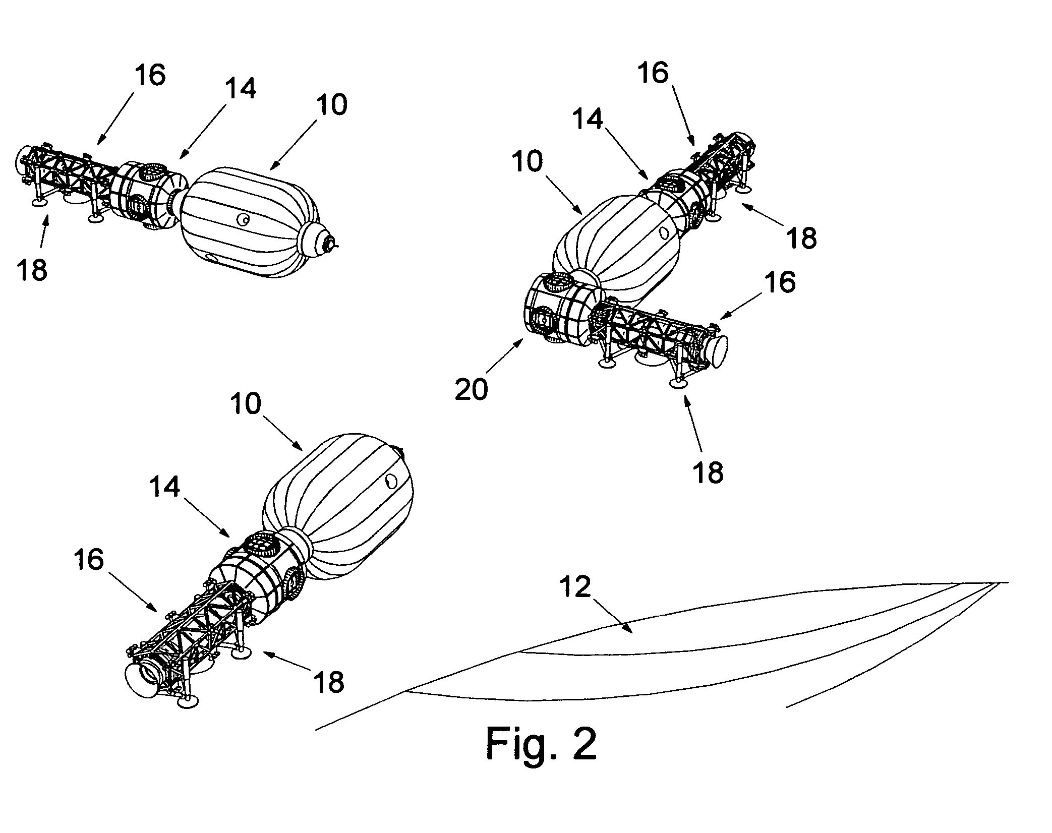 В последних патентах Bigelow отказался от центрального каркаса. Место для оборудования вообще исчезло. Изображения из патента на космическое чудовище, проглатывающее КК  ;)