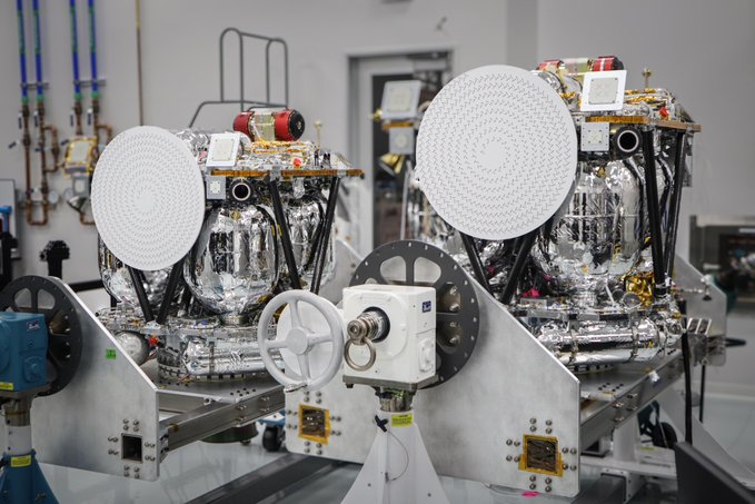 Production is complete on our twin spacecraft headed to Mars for @ucbssl and @NASA  ESCAPADE mission.