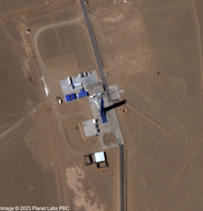 Just a few kilometres south near the CAS pad, we can see what looks like Tianlong-2 vertical on a concrete pad area. Judging from the shadow it does look like the rocket is on the 'far' side of the T/E.