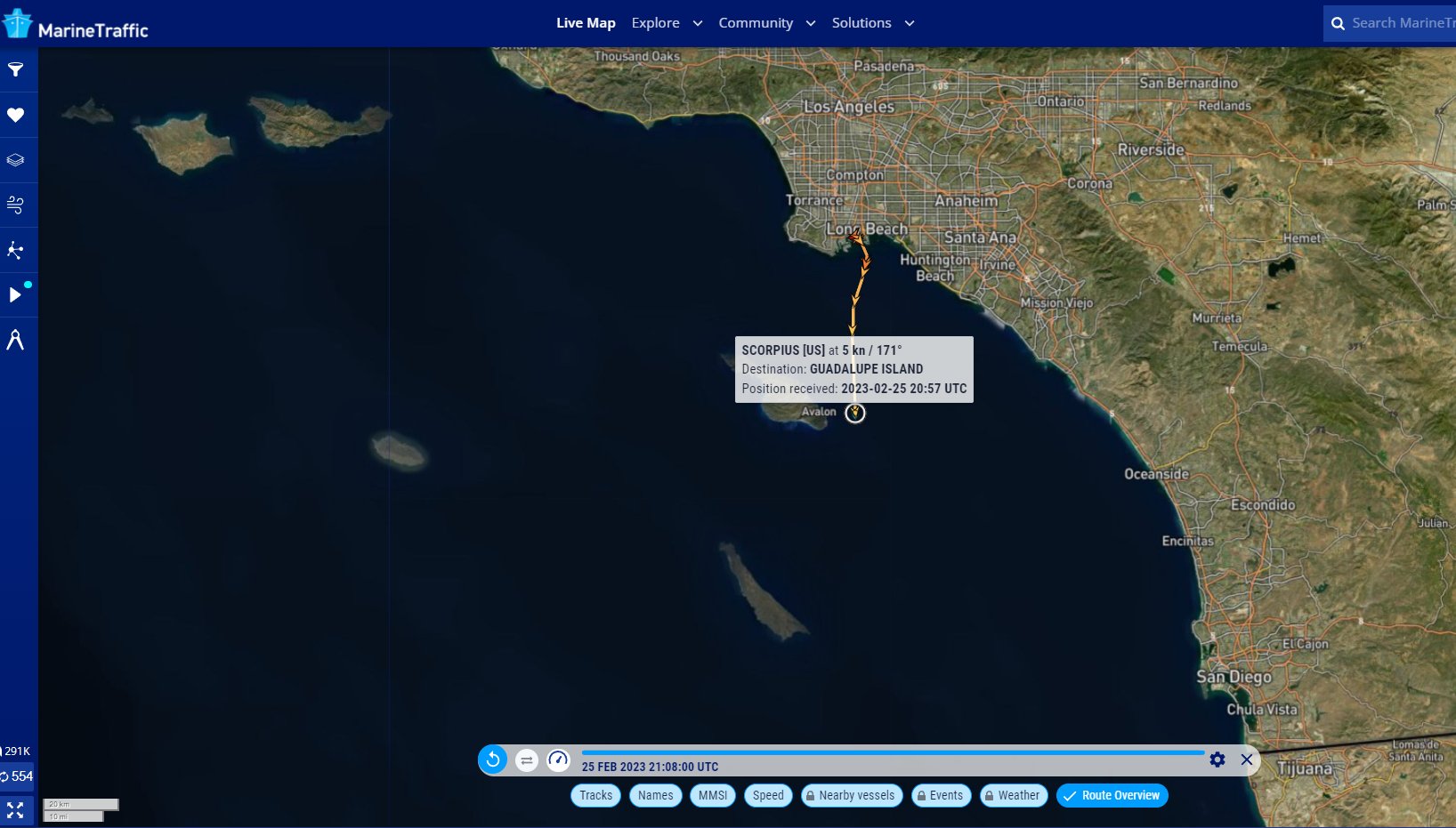 Tug Scorpius is towing OCISLY ~650 km downrange.