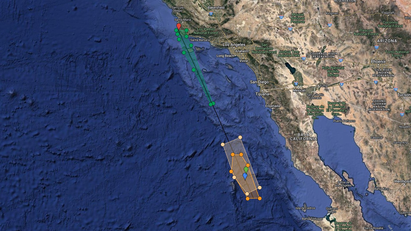 LHA map for #Starlink Group 2-7 from VSFB SLC-4E NET 28 Feb 19:20 UTC, alternatively 29 Feb to 04 Mar based on issued NOTAM/NOTMARs. B1061.12 planned landing with estimated fairing recovery 661km downrange. Stage2 debris reentry in South Pacific. http://bit.ly/LHA-23