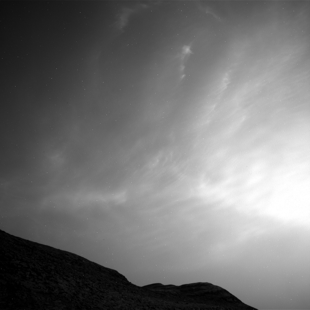 Эта панорама в реальном цвете была сделана левой камерой Mastcam Curiosity после захода солнца на сол 3724 (27 января 2023 г.). На ней изображено переливающееся высотное облако, вероятно, состоящее из льда CO2.
