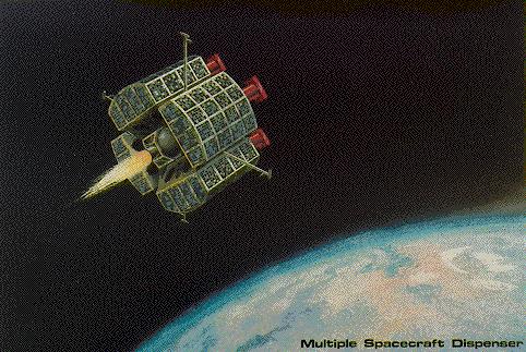 А раньше был другой вариант "реконструкции". (Кажется он успел попасть в НК к одному из первых запусков). Там блок разведения цилиндрический, а спутник - вообще длинная ферма чуть ли не типа Милстара с милстаровскими раздвижными СБ.