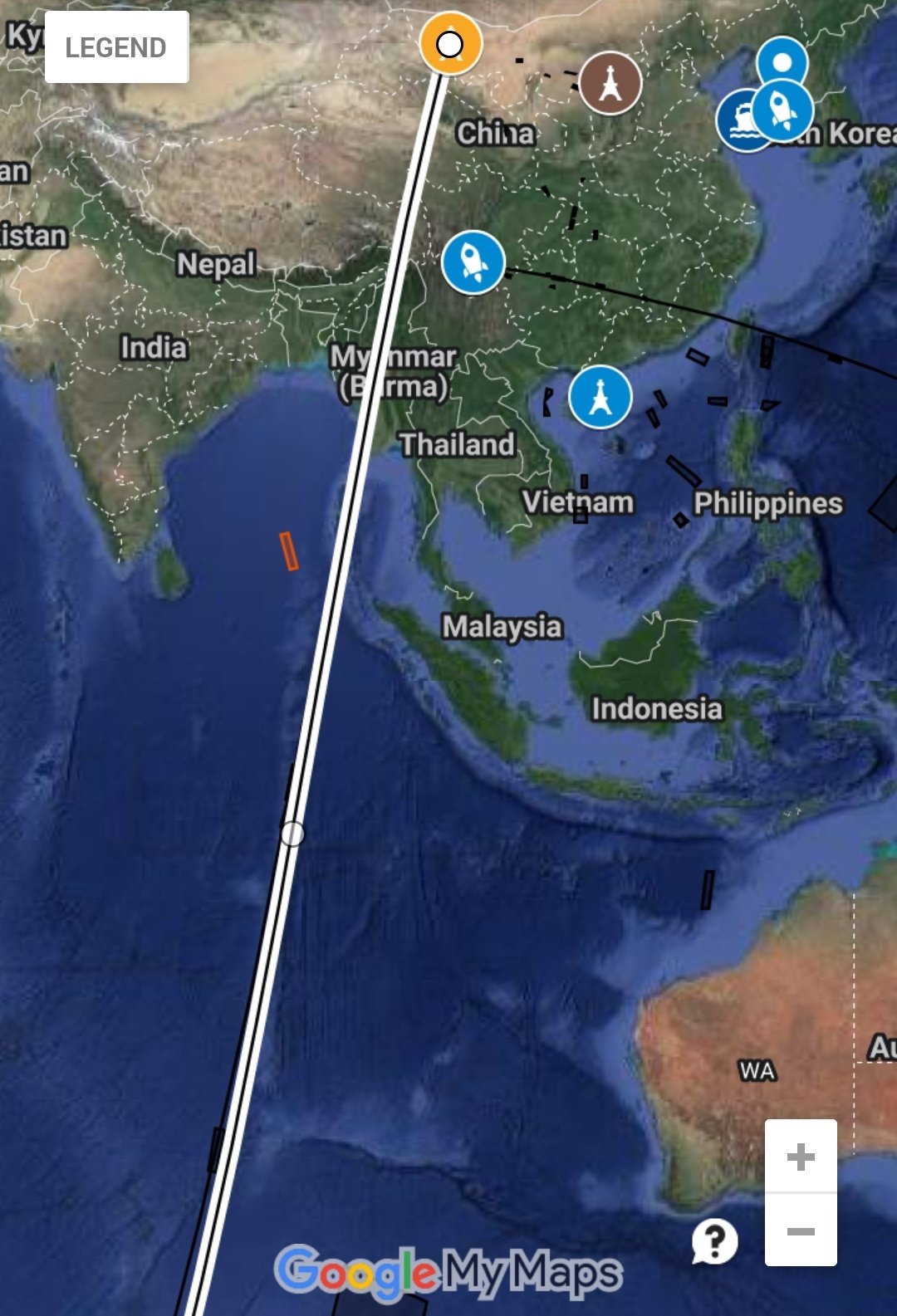 FLW RECEIVED FROM CIVIL AVIATION ADMINISTRATION OF CHINA: DUE TO UNBURNED DEBRIS EXPECTED TO FALL, THE FLIGHT SAFETY OF THE AIRCRAFT IN THE FOLLOWING AREA MAY BE AFFECTED: