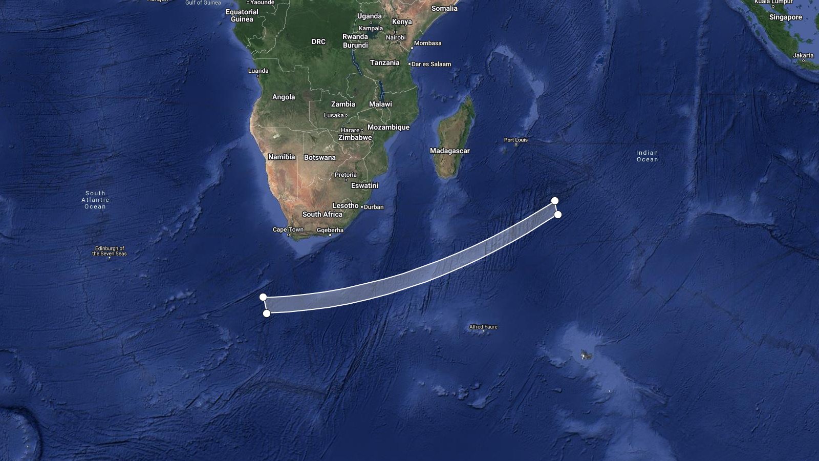 Stage2 debris reentry during second orbit south of Cape Town.