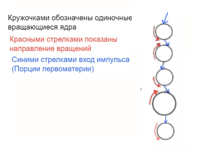 Моё сообщение перед рисунком внимательно прочитайте, там описан механизм увеличения размера элемента. А стрелочки показывают передачу импульсов, через это подходим к механизму анти гравитации. К тому как перераспределяется давление перво материи.