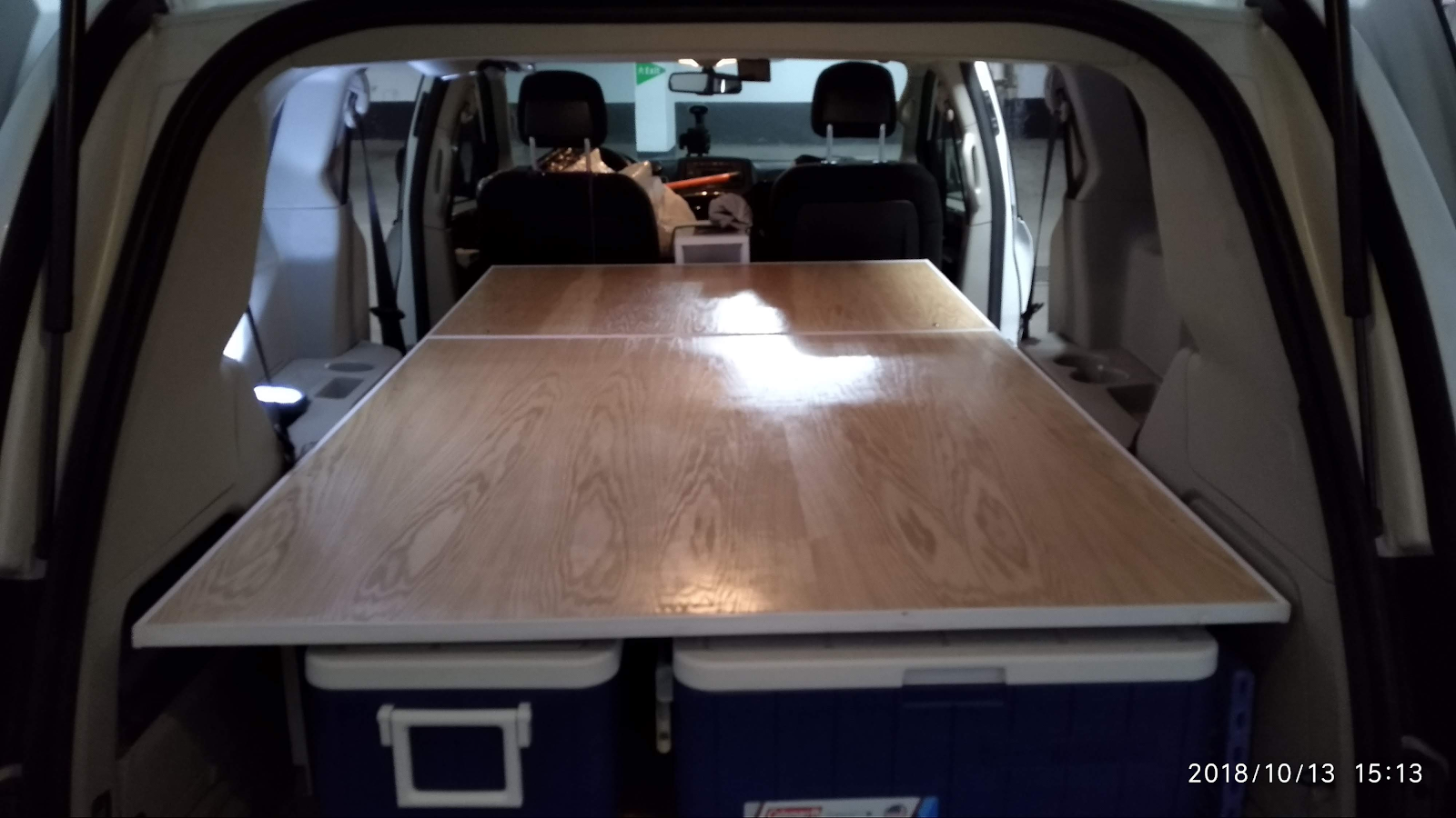 Я в своём Додж Караване сделал квин-сайз кровать. Там ведь сиденья можно полностью в пол сложить. Вполне комфортно двоим спать, а когда один то одну четверть кровати можно убрать и получается место для работы с лаптопом, или на газовой плитке чего-нибудь приготовить или разогреть, в общем микро-кемпер в котором можно запарковаться где угодно и поспать не привлекая внимания.