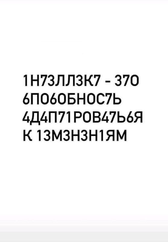 - На изображении — фраза, стилизованная под «зашифрованный» текст, где цифры заменяют похожие по написанию буквы: