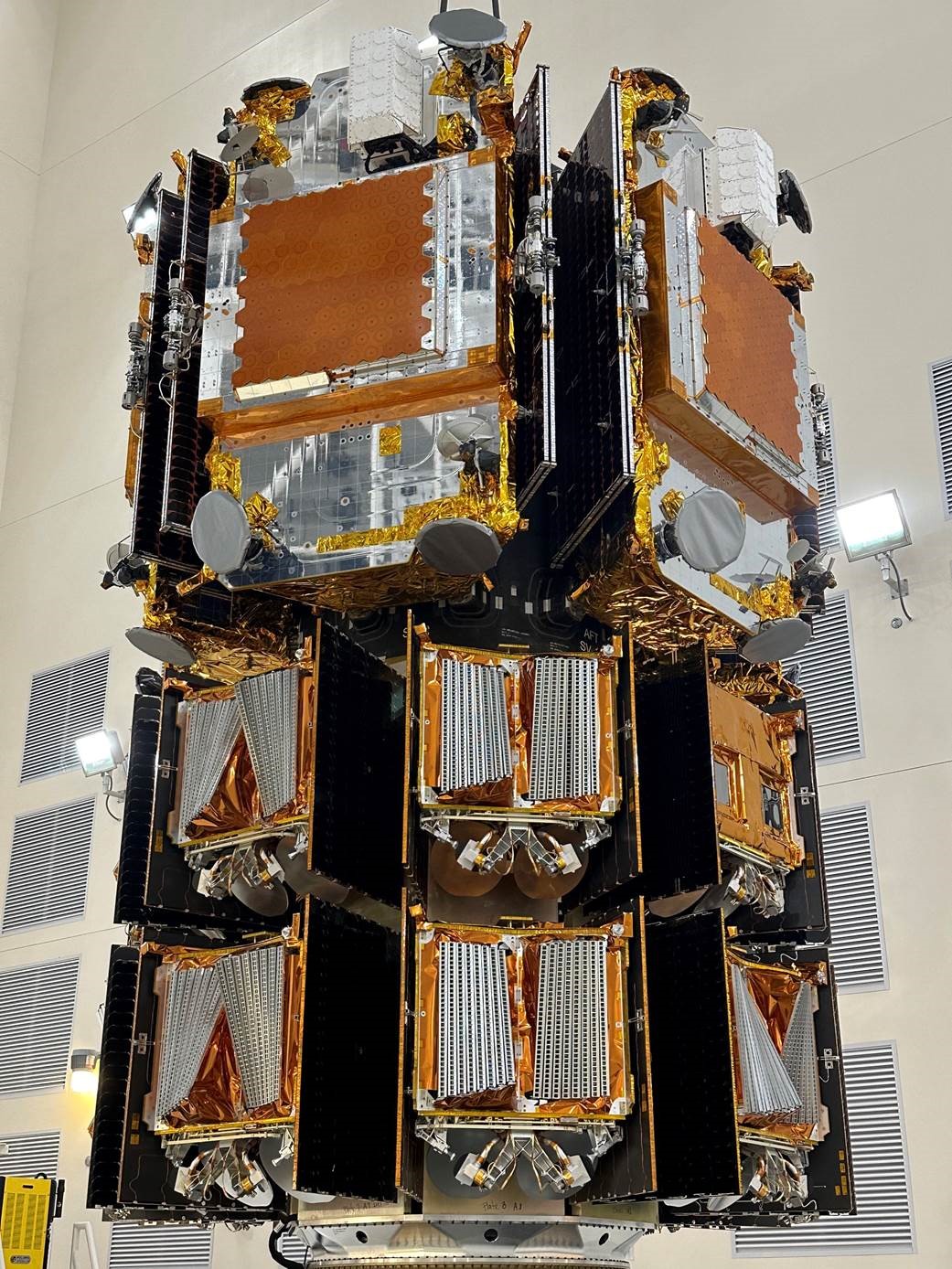 The payload stack includes Iridium's satellites on top, with our @OneWebSatellit1 satellites below.