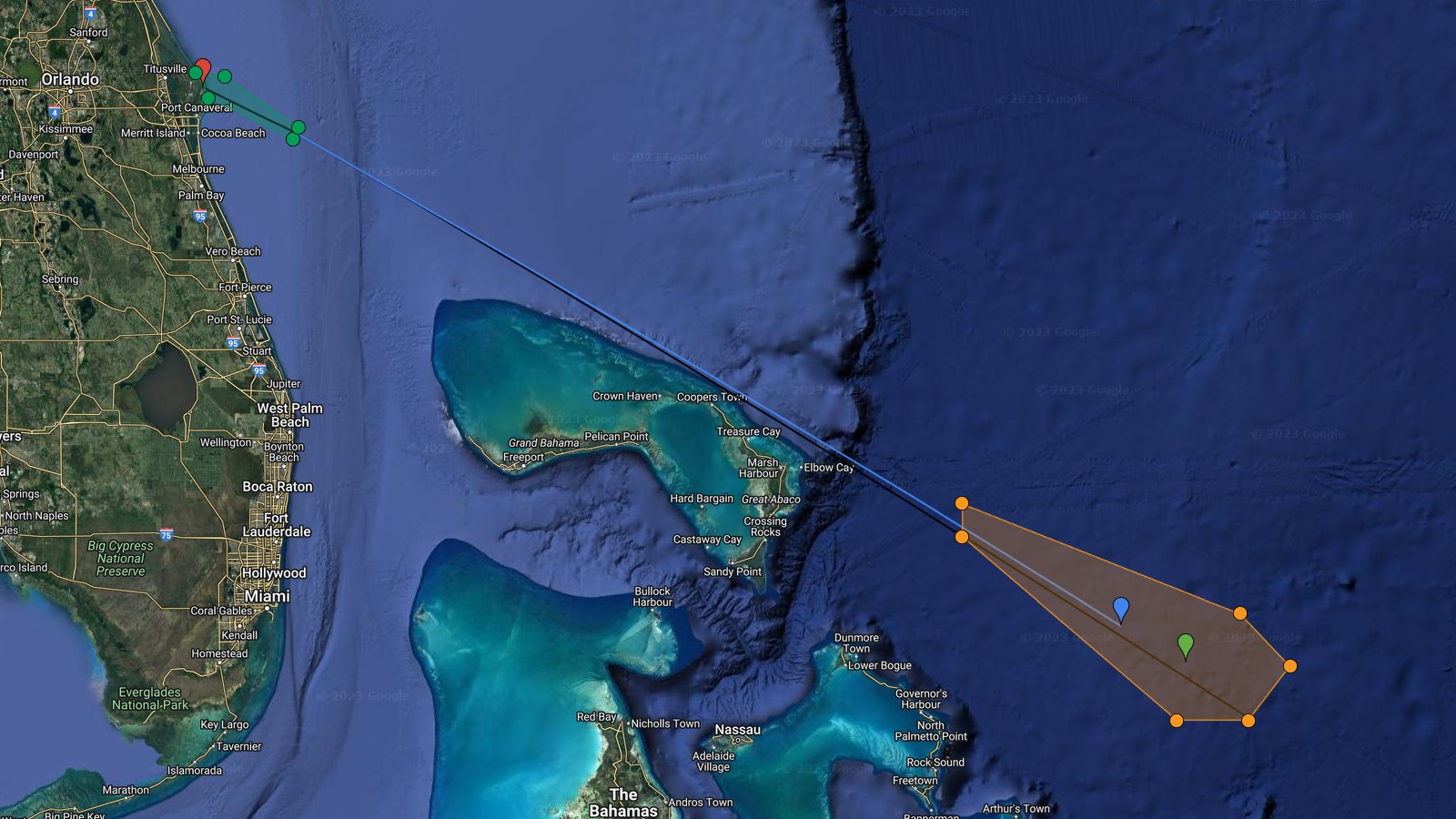 BOOSTER RECOVERY: "A Shortfall of Gravitas" drone ship northeast of the Bahamas