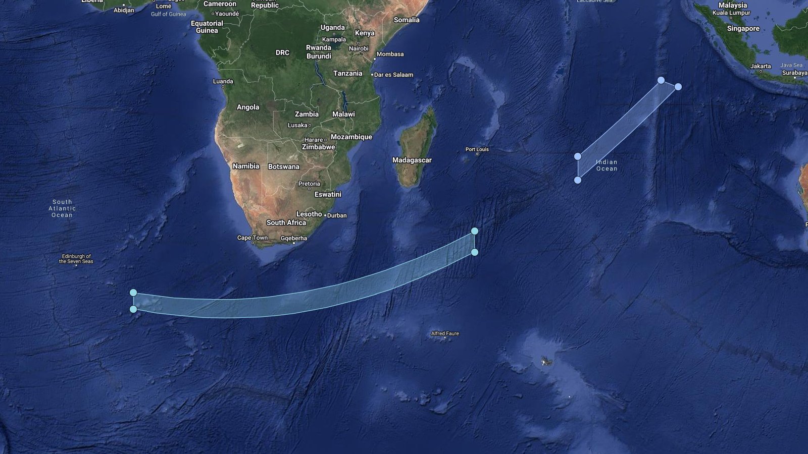 It's one reentry area in Melbourne and Johannesburg flight information regions. Newly issued NOTMAR now covers the whole area.