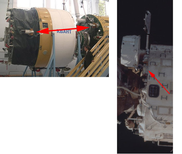 Эта штука на Кванте - их на самом деле 2, по обоим бортам. Это звездные датчики 161К, если цифры еще не запамятовал.