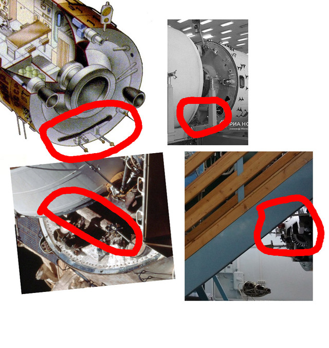 да. с той стороны, где Квант пристыкован. Там по окружности разной аппаратуры напихано. Имея нехилую подборку фото (как реальной станции так и макетов), я кое что распознал, отрисовал и разместил. Но в ряде случаев остались вопросы.