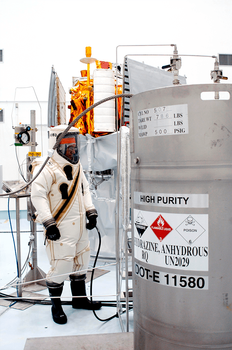 На всякий случай, вот как заправляли спутник экспериментальным грин пропеллент: