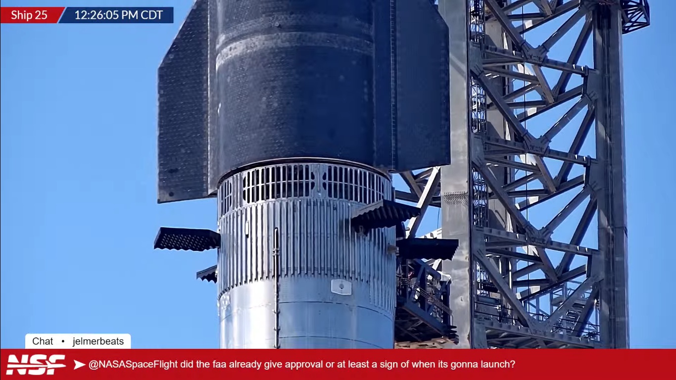 SpaceХ: Starship fully stacked while team prepares for a launch rehearsal. We continue to work with the FAA on a launch license.
