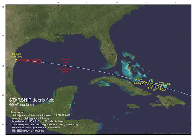 Так на сколько от старта успела отлететь страхолетина? Я в KSP прикинул - в районе 2000-2400 от старта подрыв. И по баллистике если б не подорвали, но оставили так как есть (если внешний подрыв)  улетела бы на 7000  максимум - чуток до узкого места пролива между африкой и бразилией не дотягивая.