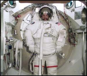 На сегодня у Фоула запланировано много работы с американскими скафандрами EMU (extravehicular mobility unit) . Раз в год проводится диагностика всех систем , от электроники до последнего клапана в системе охлаждения. Операции проходили в американском шлюзе Quest, и Майк в течении получаса расчищал там пространство для деятельности, подключал лэптоп для съёма параметров . Калери тоже помогал - тестировал связь.