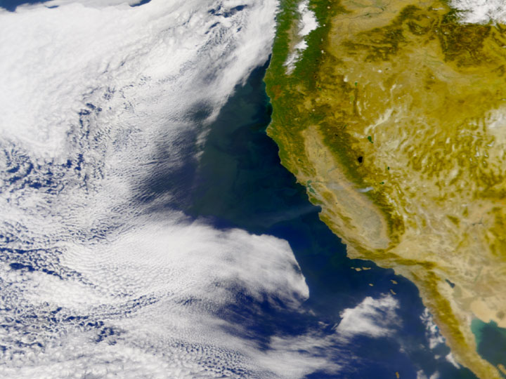 В эксперименте "Диатомея" (изучение биопродуктивных районов океана) засняты зоны апвеллинга (upwelling) в Карибском море , возле северо-западного побережья Африки . Upwelling - восходящее течение , выносящее к поверхности океана богатые питательными веществами глубинные воды. В зонах апвеллинга много планктона , а следовательно и рыбы . Из космоса эта зона выглядит темным , почти черным участком океана.