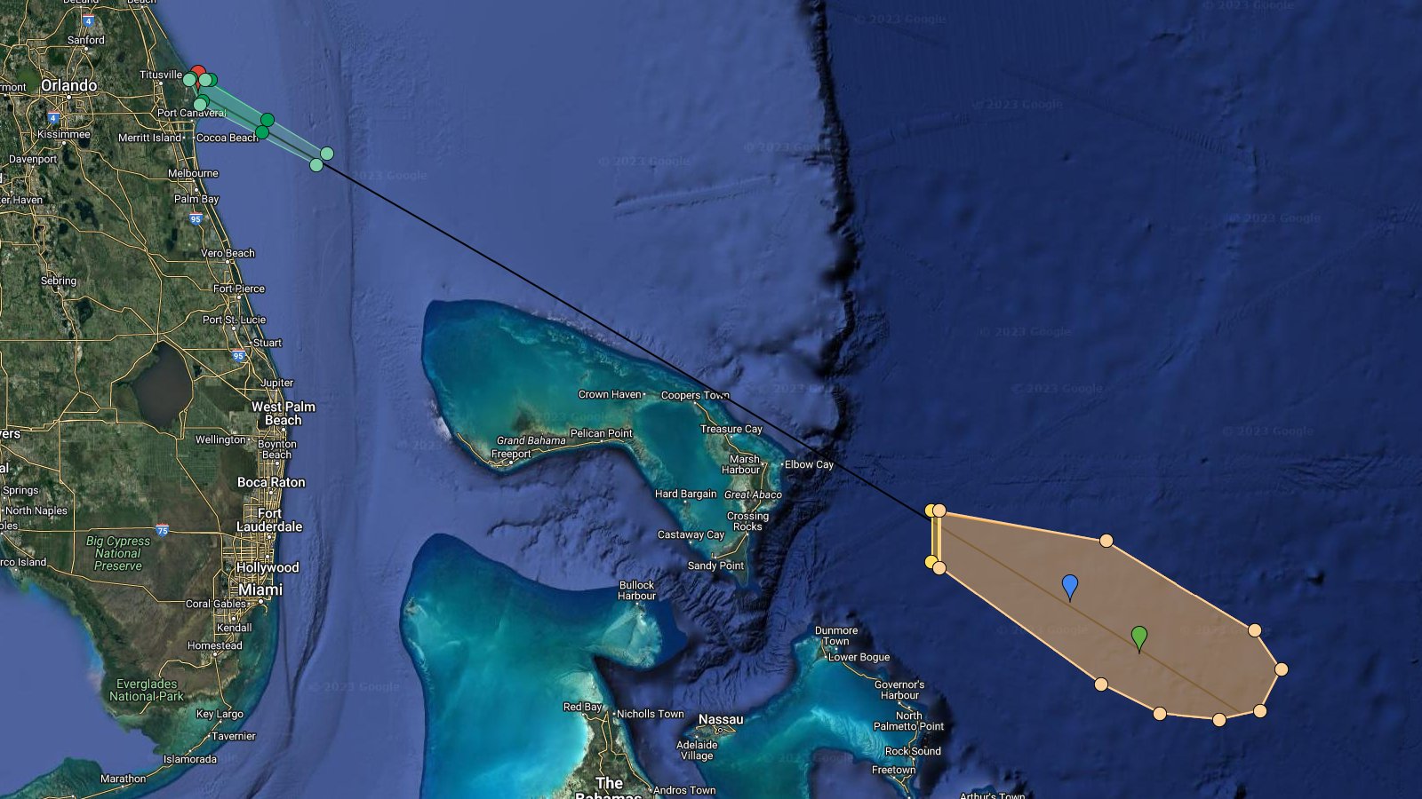 Departure! Doug is underway from Port Canaveral for Starlink 6-13, which also gets them away from Hurricane Idalia.