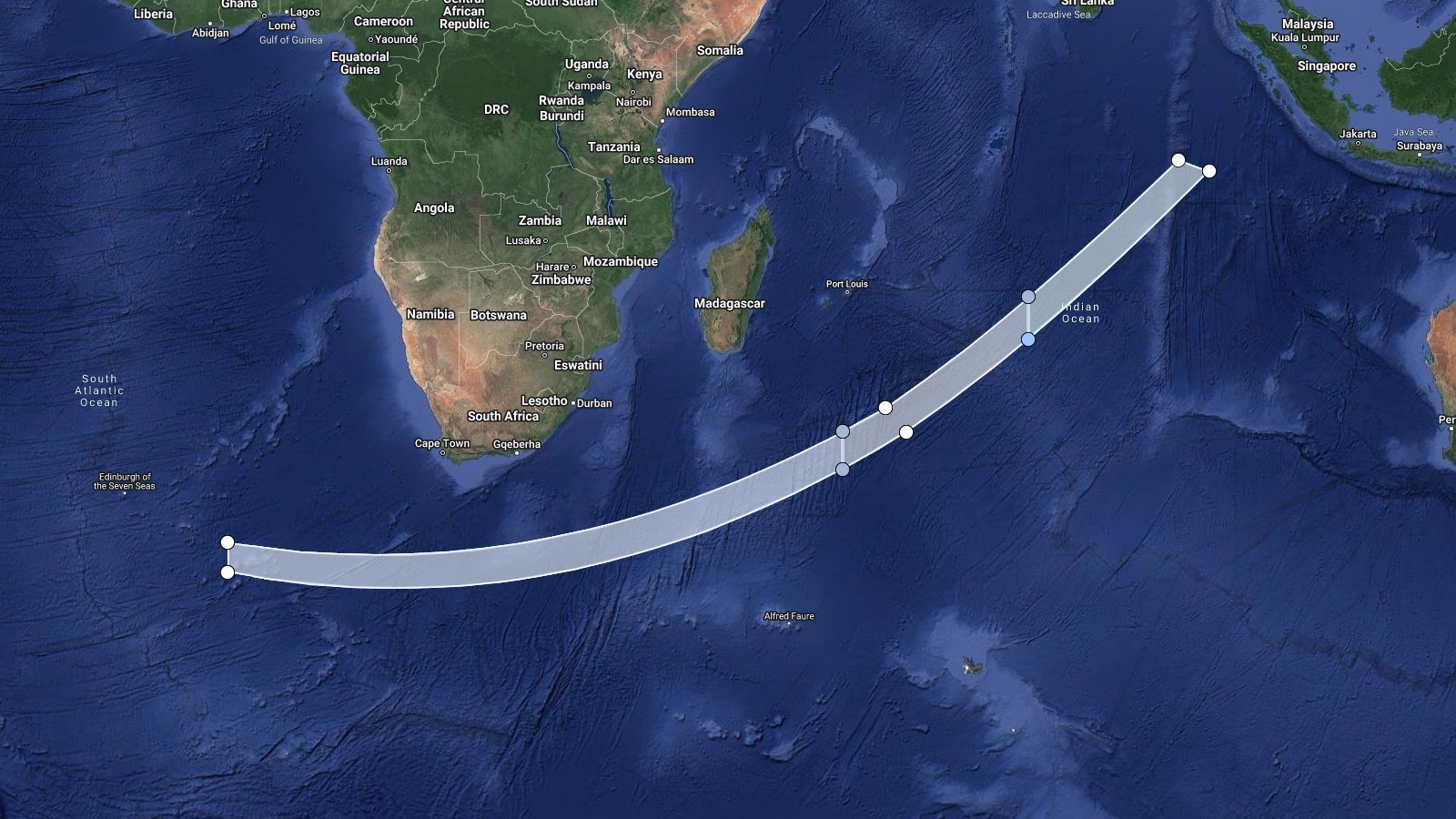 LHA map for #Starlink Group 6-13 from CCSFS SLC-40 NET 31 Aug ~23:52 UTC, altern. 01 to 07 Sep based on issued NOTAM/NOTMARs. Estimated booster recovery ~618km with estimated fairing recovery ~672km downrange. S2 debris reentry area in Indian Ocean. http://bit.ly/LHA-28