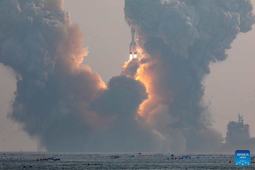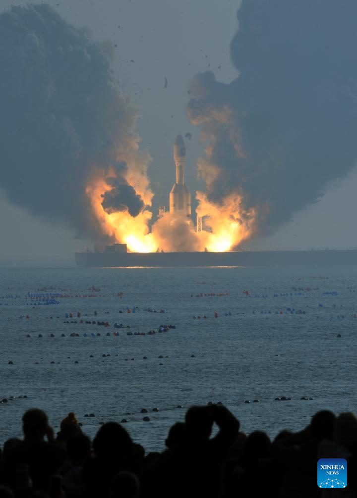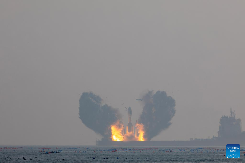 The Taiyuan Satellite Launch Center launched the commercial rocket from waters off the coast of Haiyang, east China's Shandong Province, at 1:30 p.m. (Beijing Time).