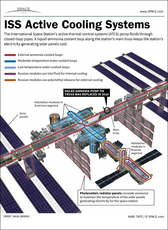 У американцев аммиак во внешнем контуре и обычная вода во внутреннем. В РС МКС - силоксан и триол.