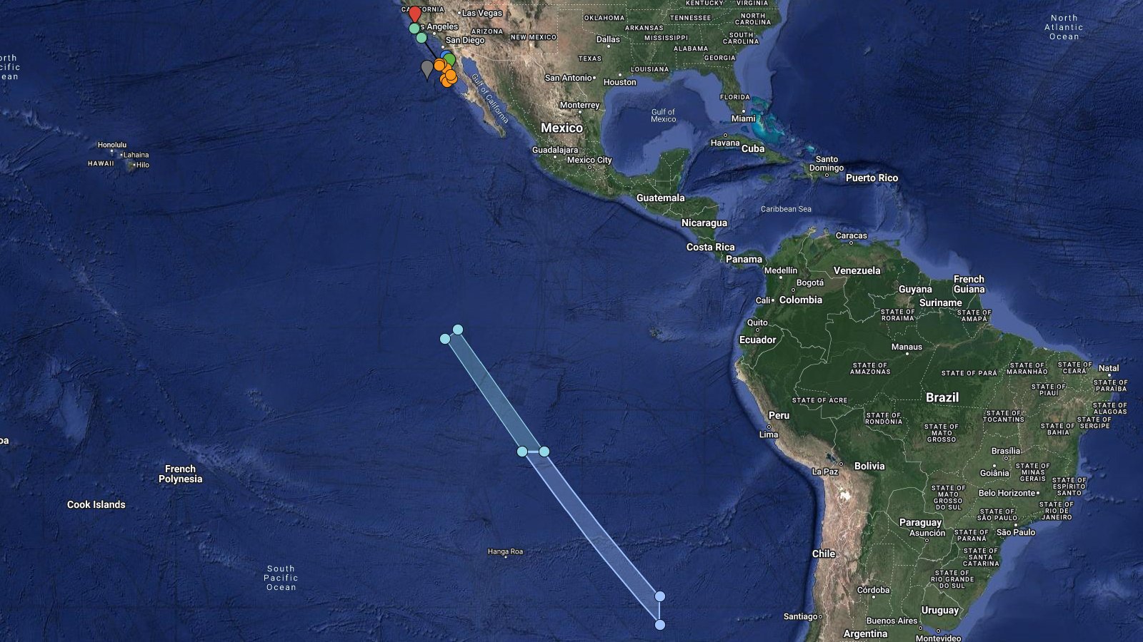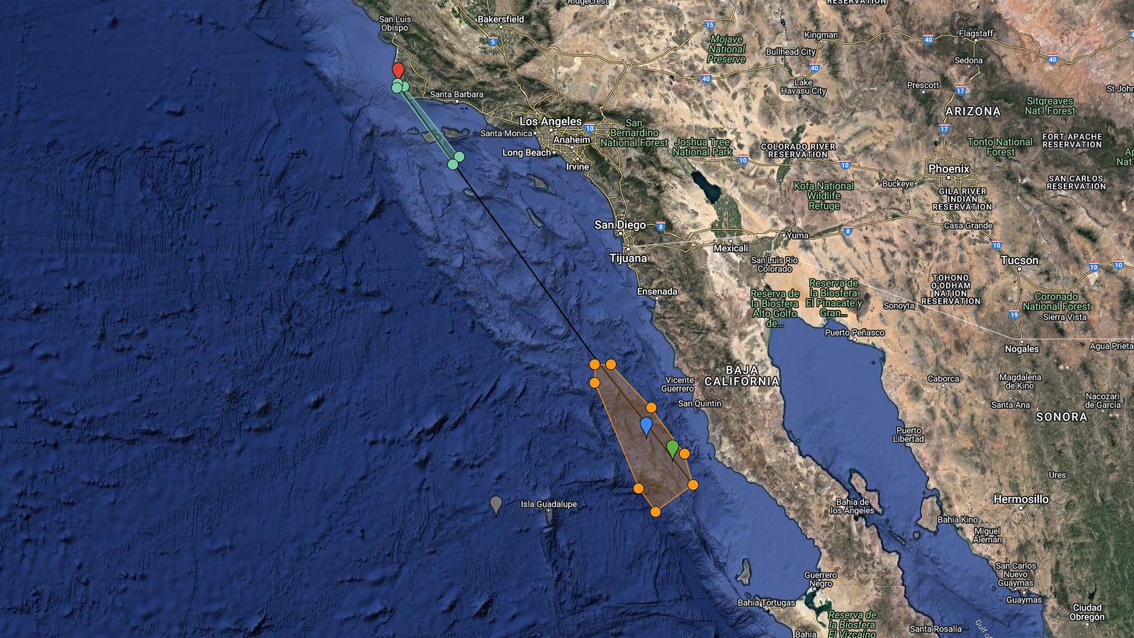 LHA map for #Starlink Group 7-5 from VSFB SLC-4E NET 21 Oct ~07:39 UTC, altern. 22 to 27 Oct based on issued NOTAM/NOTMARs. Estimated booster recovery 631km with estimated fairing recovery ~681km downrange. Stage2 debris reentry in East Pacific. http://bit.ly/LHA-29