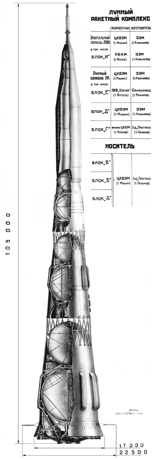 Это конфигурация для лунного полёта в составе полноценного сверхтяжелого носителя, всё что под обтекателем это ПН, а для использования в режиме Н-11 и Н-111 желательна ещё одна коническая ступень с верхним диаметром 4.1 метров, т.к. верхний диаметр блока В 5.5 метров, или же блок конический переходник представляющий собой единое целое с блоком Г.