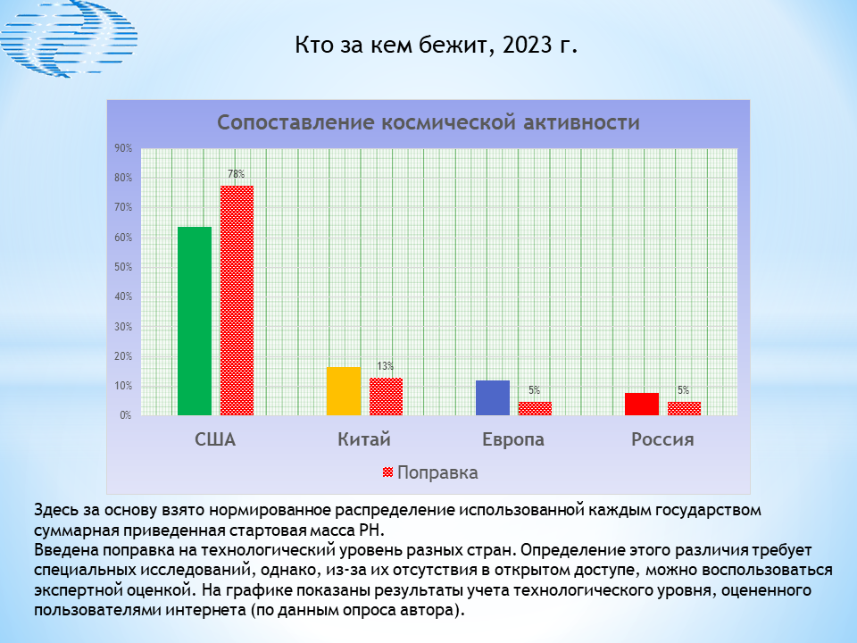 По результатам опроса Интернета об уровне технологий ведущих космических стран, изначальный слайд теперь выглядит так: