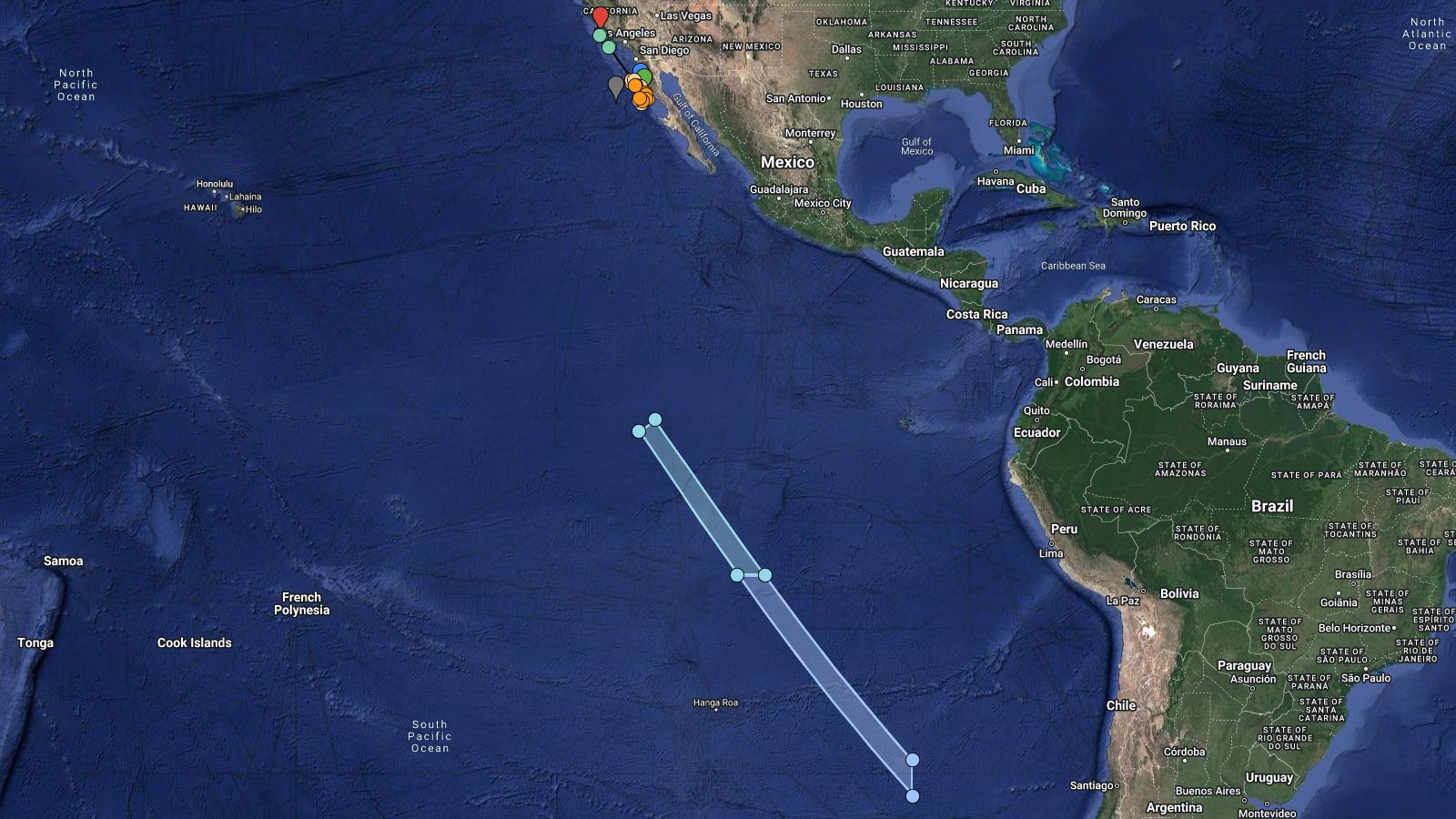 LHA map for #Starlink Group 7-7 from VSFB SLC-4E NET 18 Nov ~07:17 UTC, altern. 19 to 23 Nov based on issued NOTAM/NOTMARs. Estimated booster recovery ~631km with estimated fairing recovery ~693km downrange. Stage2 debris reentry in East Pacific. http://bit.ly/LHA-30