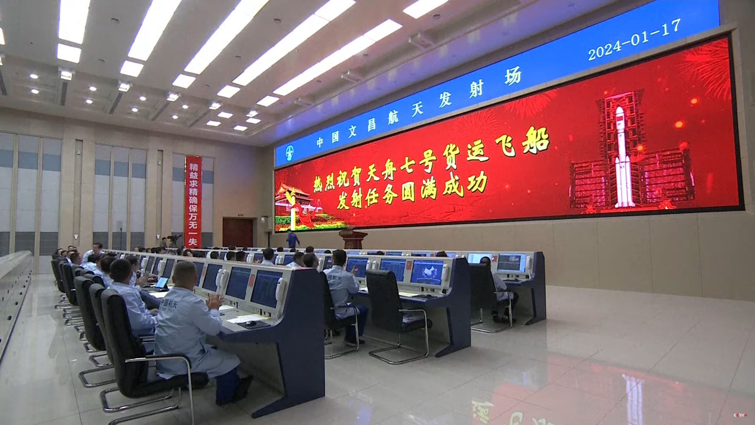 The Tianzhou-7 (天舟七号) cargo spacecraft was launched by the Long March-7 Y8 (长征七号遥八运) launch vehicle from the Wenchang Spacecraft Launch Site, Hainan Province, China, on 15 January 2024, at 14:27 UTC (22:27 China Standard Time). Tianzhou-7 is the sixth cargo mission to the China Space Station (中国空间站), scheduled to autonomously dock to the Tianhe Core Module (天和核心舱).