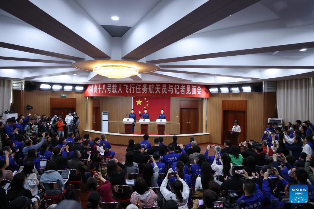 Цзюцюань, 24 апреля /Синьхуа/ -- Е Гуанфу, Ли Цун и Ли Гуансу, три китайских космонавта, которые выполнят пилотируемую космическую миссию "Шэньчжоу-18", в среду встретились с прессой.