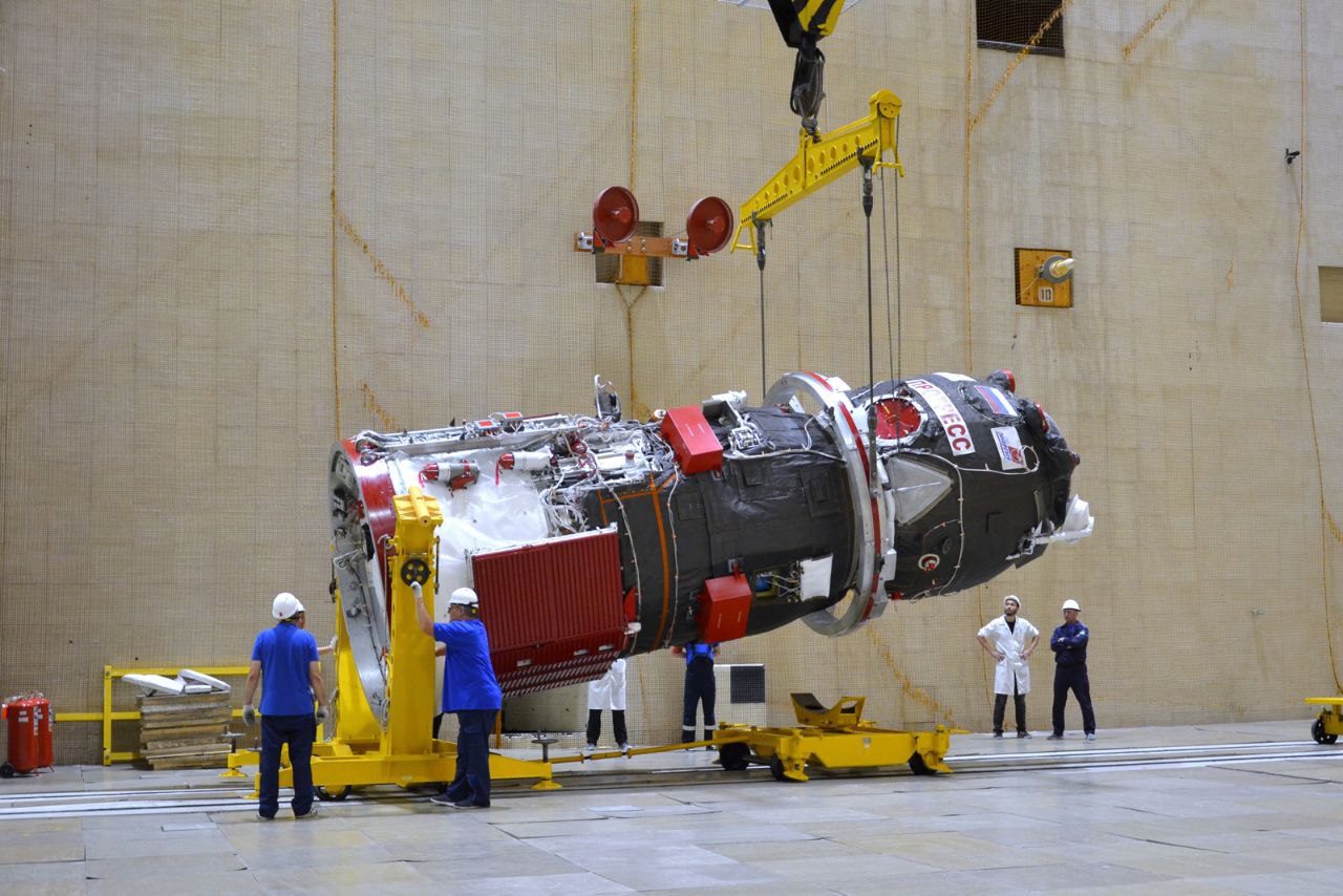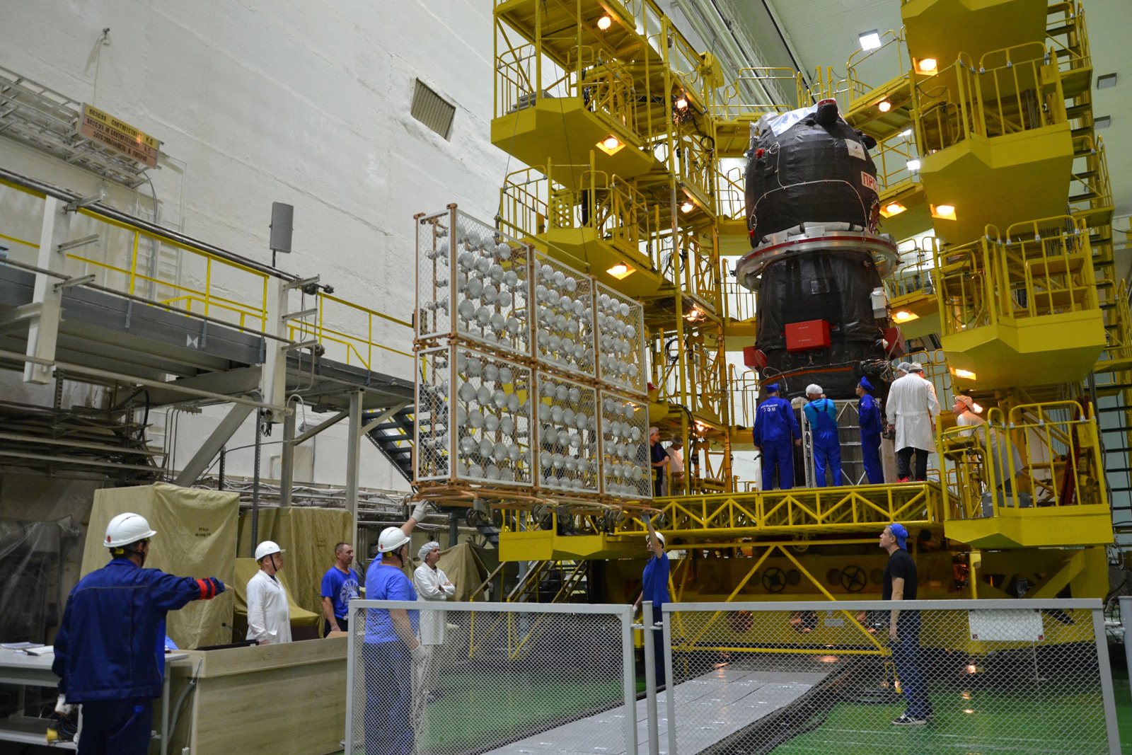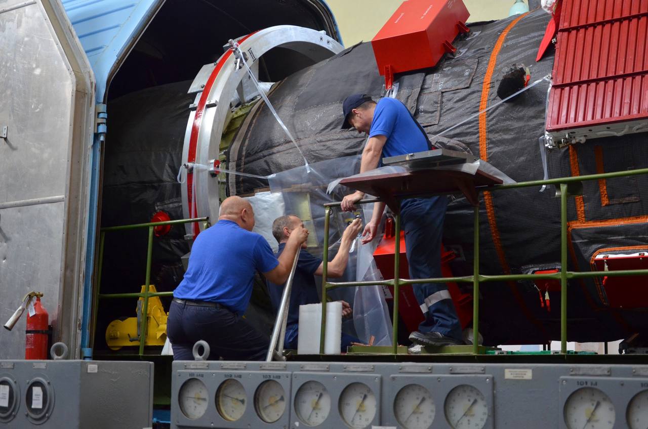 Корабль прошёл контрольное взвешивание и балансировку в МИКе 254-й площадки Байконура, затем он отправился на станцию для заправки баков комбинированной двигательной установки и системы дозаправки.
