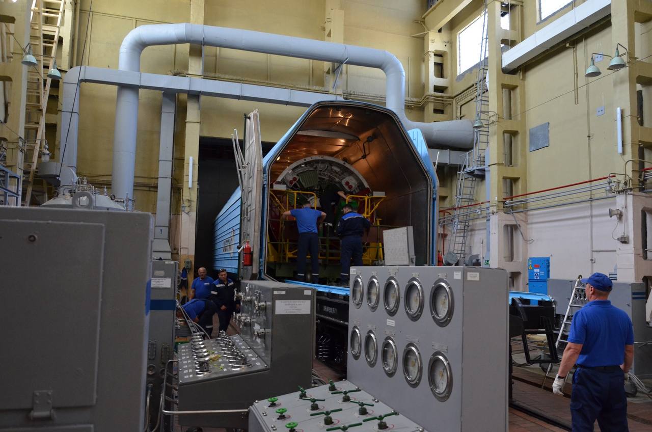 В монтажно-испытательном корпусе 254-й площадки специалисты Ракетно-космической корпорации «Энергия» имени С.П. Королёва и Космического центра «Южный» Центра эксплуатации объектов наземной космической инфраструктуры (входят в Госкорпорацию «Роскосмос») выполнили пневмовакуумные испытания корабля, начатые в вакуумной камере 5 июля.