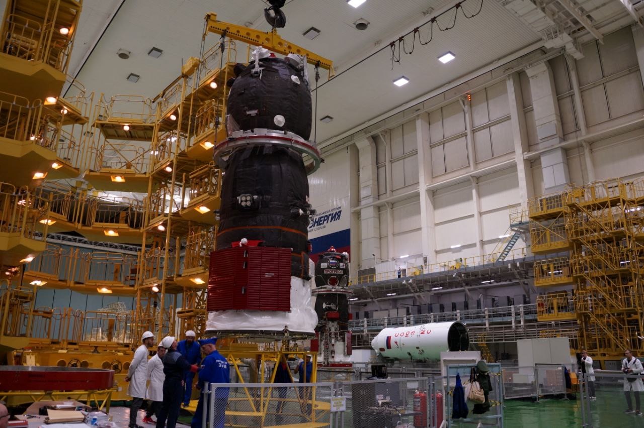 Сегодня в монтажно-испытательном корпусе 254-й площадки космодрома Байконур специалисты Ракетно-космической корпорации «Энергия» имени С.П. Королёва и других предприятий Госкорпорации «Роскосмос» состыковали грузовой корабль «Прогресс МС-28» с переходным отсеком перед запуском к Международной космической станции.