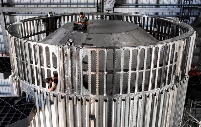 В вышеприведенном видео обращают внимание на такой вот момент. На фото, которое я выкладывал выше, вторая слева секция - это верх бустера V1. Если считать, что на базе осталось 4 корабля и 4 почти готовых бустера V1, для чего тогда эта секция? Ведь больше версию 1 выпускать не собирались. Автор видео даже предположил, что первый корабль V2 мог бы полететь на бустере V1, но пока это чистая спекуляция.