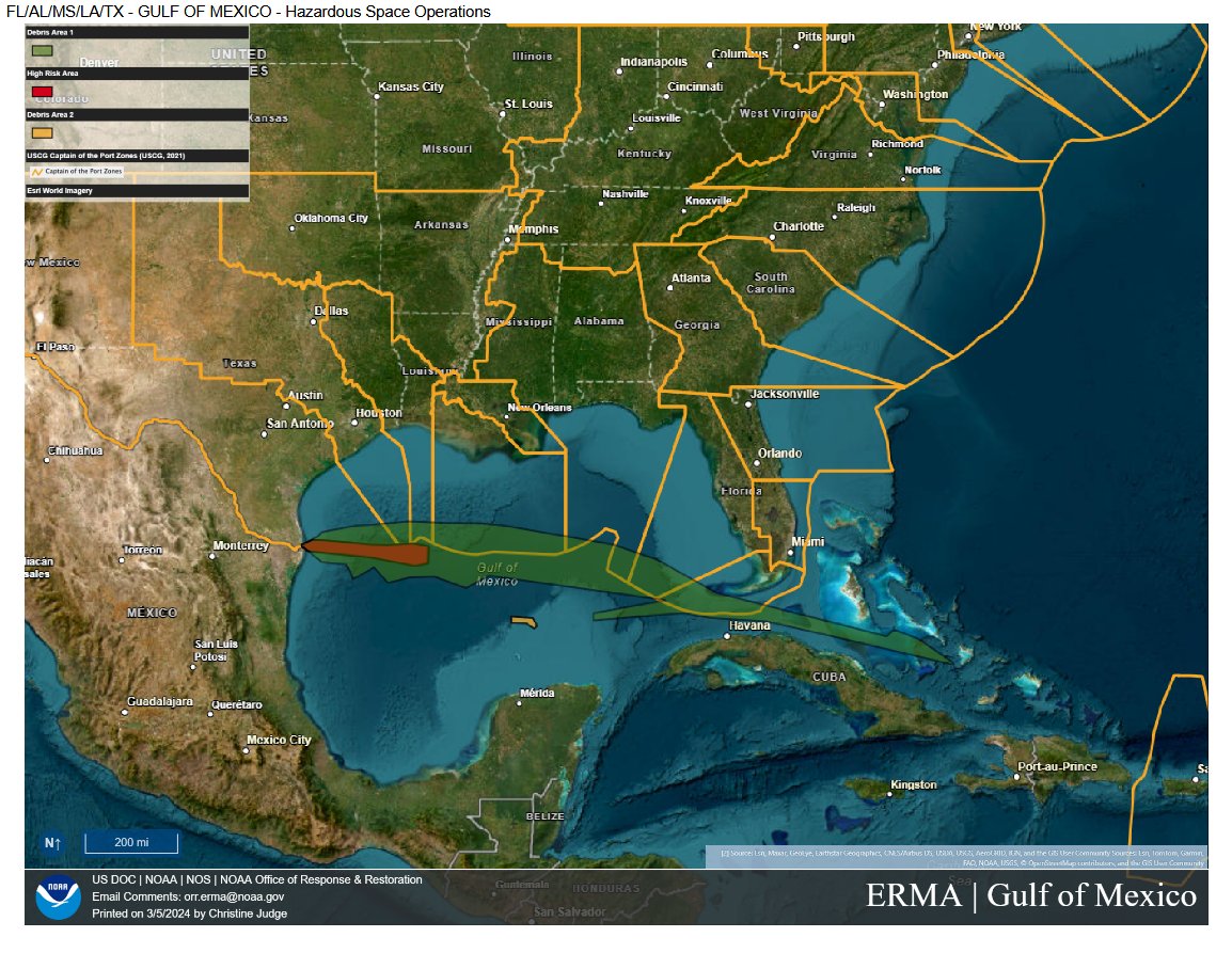 E) DANGEROUS AREA FOR FALLING DEBRIS OF STARSHIP FLT-3 ROCKET